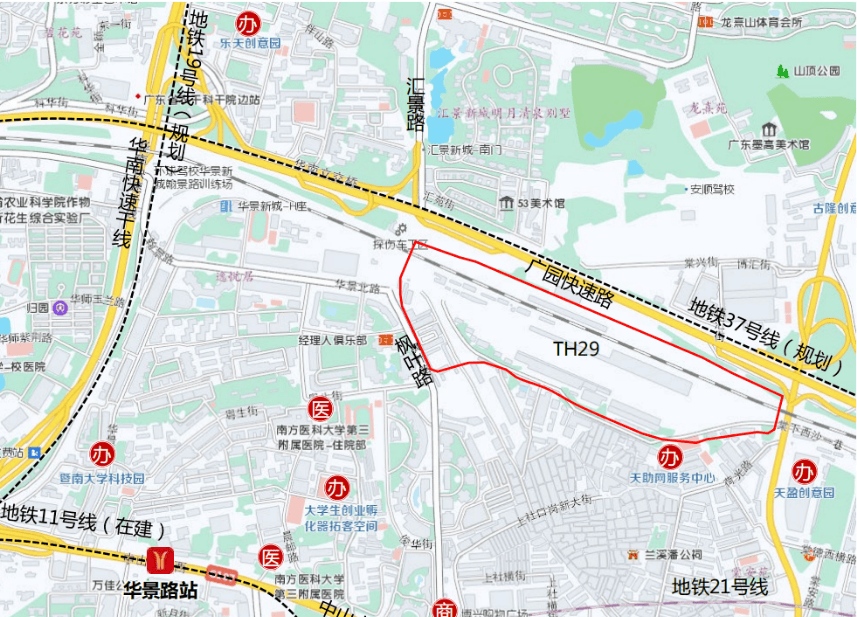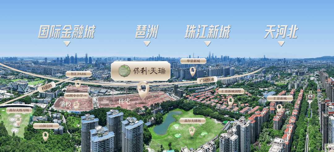 项目位于河汉五山汇景新城板块内,珠江新城和琶洲金融城两中轴间的焦点,楼盘死后就是汇景20年醇熟的圈层配套?。